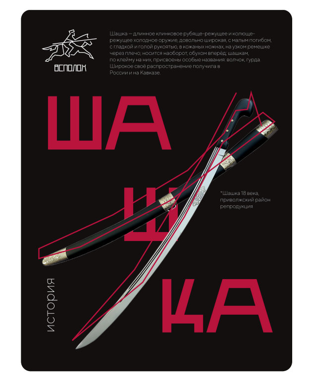 - Графика: чёткие линии, как сабельный удар, и паттерны, напоминающие традиционную вышивку.